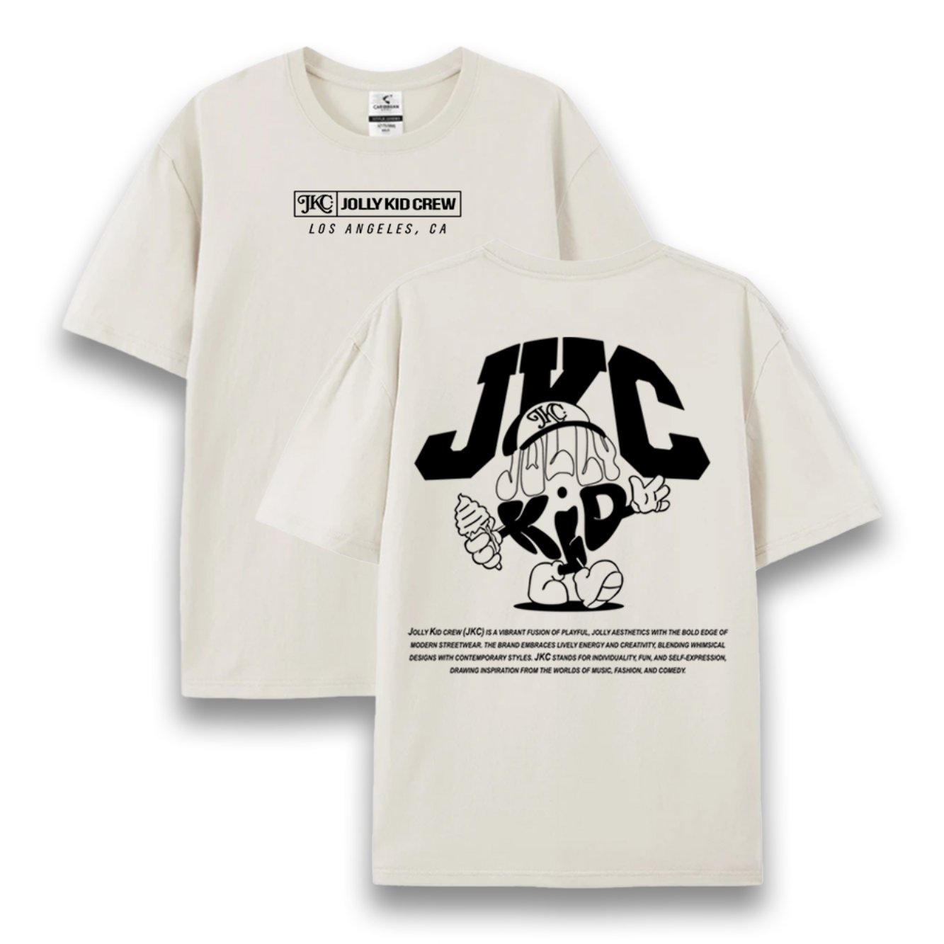 - Front chest Jolly Kid Crew box logo design; Mascot + JKC graphic on the back